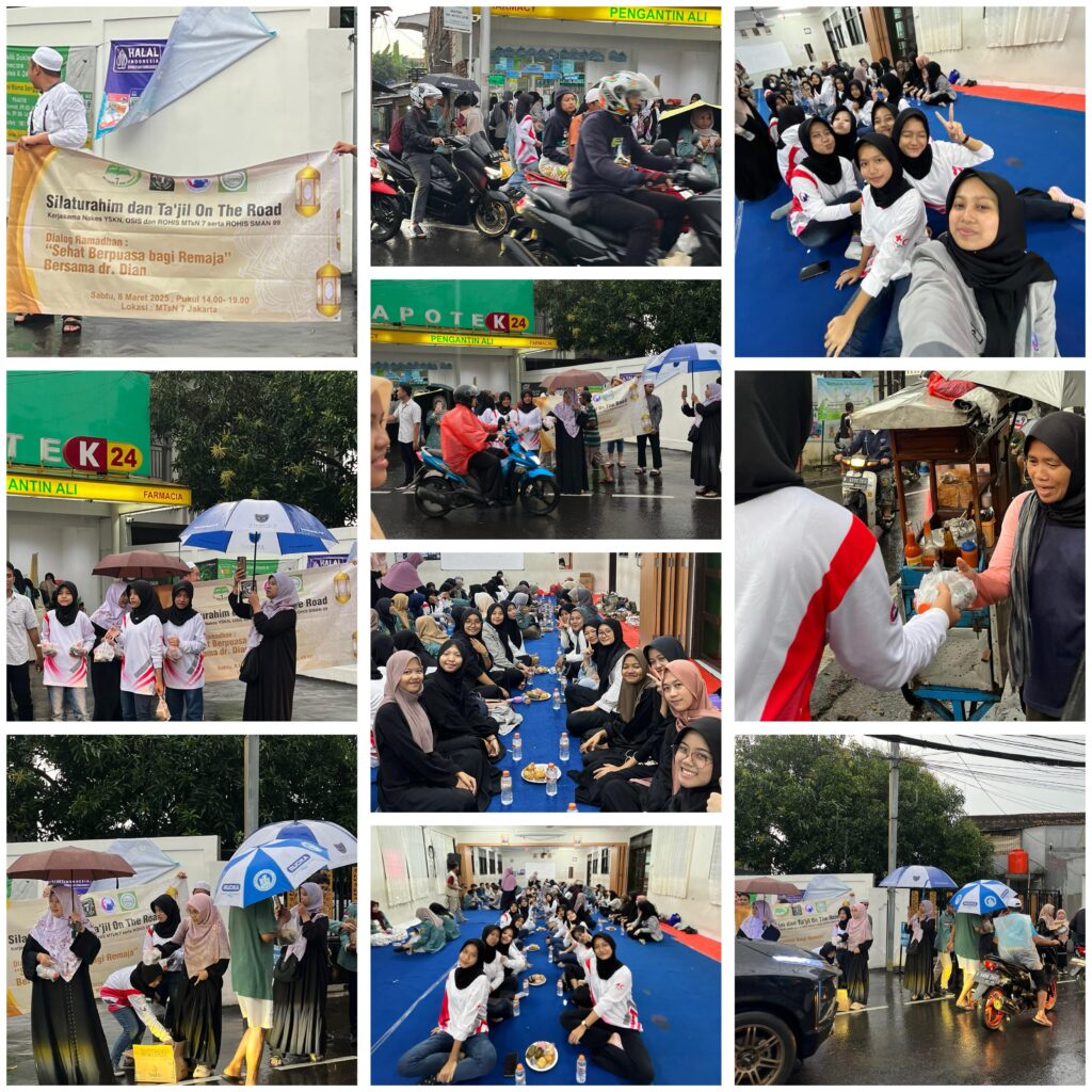Dalam rangka mempererat tali silaturahmi dan berbagi kebaikan di bulan penuh berkah, YSKN dan Nakes YSKN berkolaborasi dengan OSIS dan Rohis MTsN 7 Jakarta serta Rohis SMAN 99 Jakarta menyelenggarakan kegiatan “Silaturahim & Ta’jil On The Road” pada Sabtu, 8 Maret 2025. Kegiatan ini merupakan bentuk kepedulian sosial dan wujud nyata dari semangat berbagi kepada sesama, khususnya kepada mereka yang membutuhkan. Kegiatan ini dilaksanakan di lingkungan sekitar MTsN 7 Jakarta.